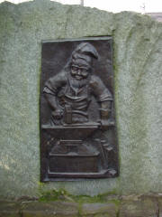 Zu den sagenumwobenen Gestalten von Höhenhaus gehört der "Grinkenschmied". Mehrere Denkmäler sind ihm am Wupperplatz gesetzt.